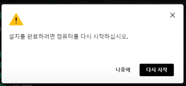 설치가 완료되면 다시 시작을 눌러 컴퓨터를 재부팅합니다.
